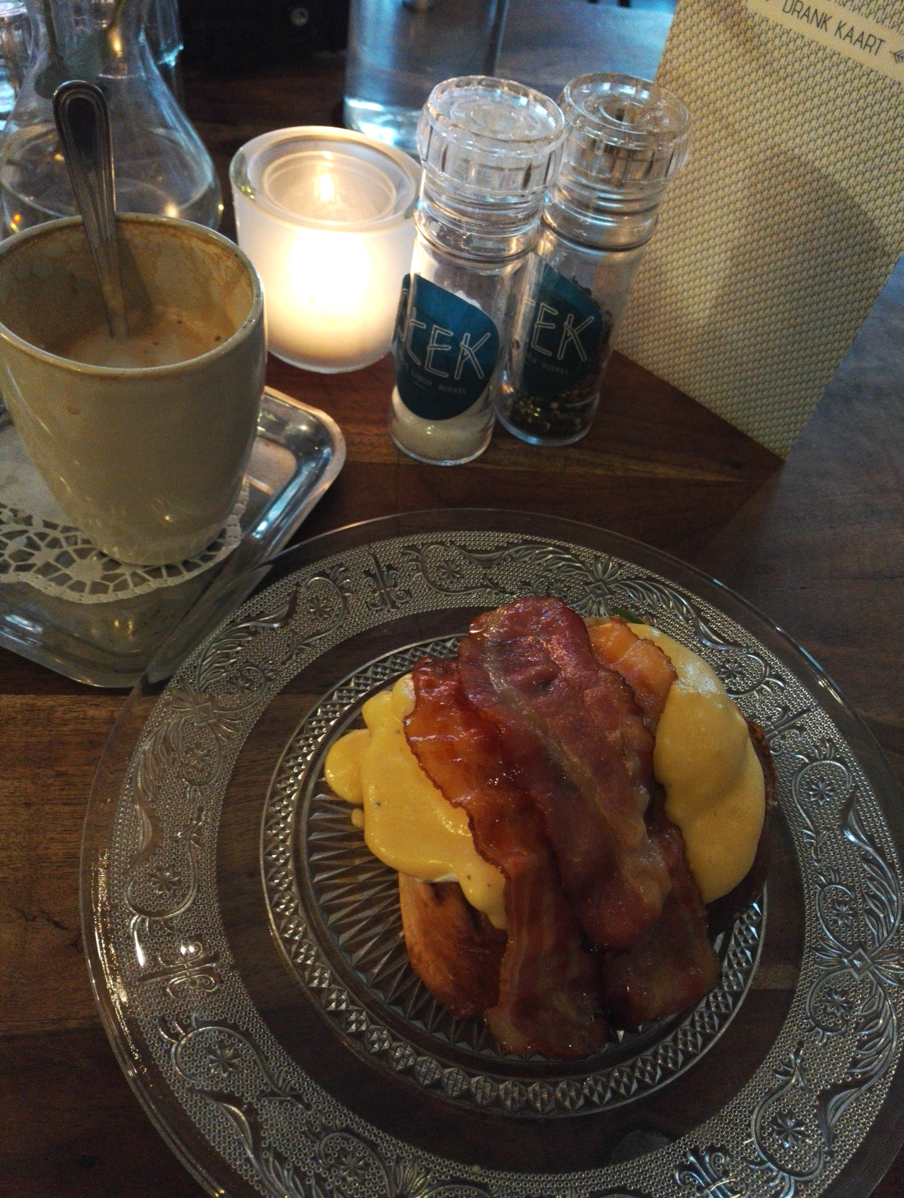Ontbijt hebben we niet in het hotel genomen. Ik wou graag eens eggs benedict proberen en bij het ontbijttentje Stek stonden ze op het menu. Dus daar wou ik heen. Het ligt een paar 100m van het hotel, dus heel dichtbij.