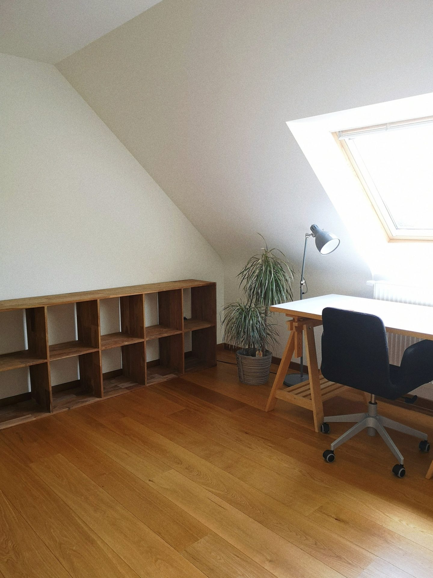 Zalig, zo’n eigen plekje! Wij hebben boven een bureau dat ik ook deel met mijn vriend maar daar is nog geen verwarming dus mijn vriend werkt nu beneden en ik zit altijd in de zetel met mijn laptop :p Ik zou op termijn toch ook wel graag een vast plekje hebben. Ben benieuwd naar het resultaat als het echt af is!
